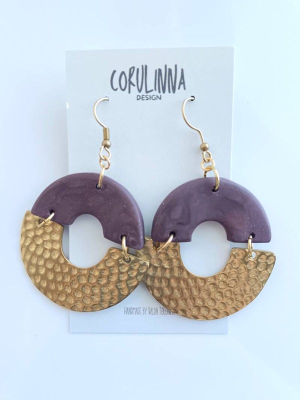 Maroon and gold statement earrings made from polymer clay, brass and metal alloy hooks. Cannot guarantee nickel free.