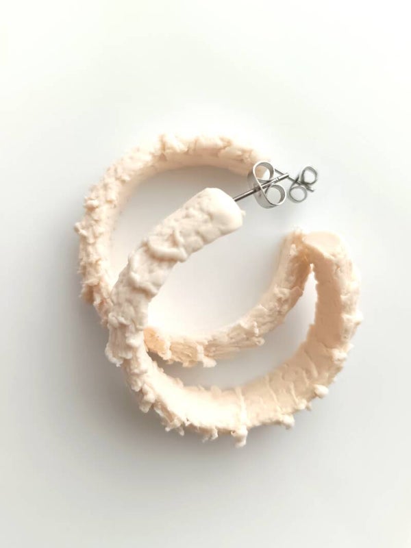 Ivory rustic hoop earrings made from polymer clay and finished with embedded high quality stainless steel studs. These hoops are very flexible, but it is not recommended to bend them deliberately.