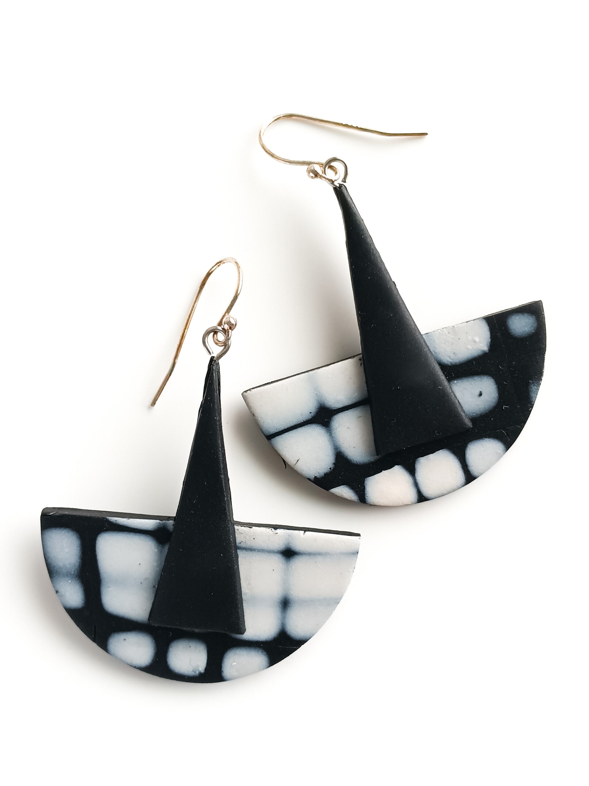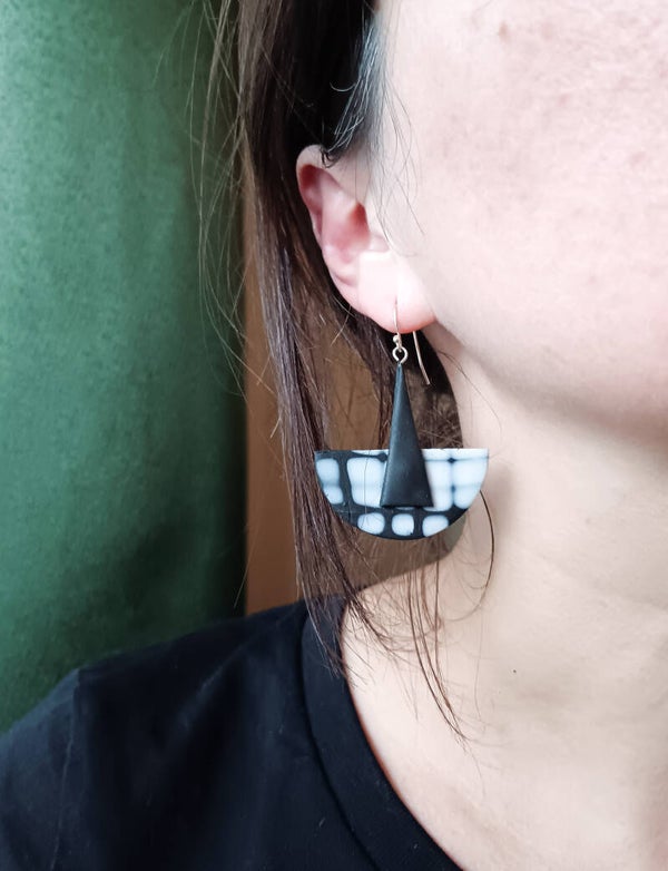 Distorted Lines black and white boat earrings