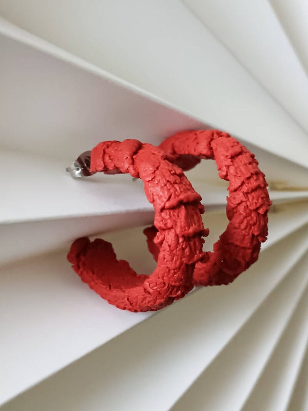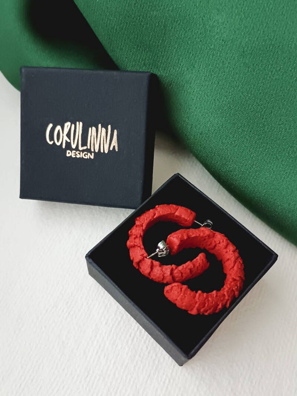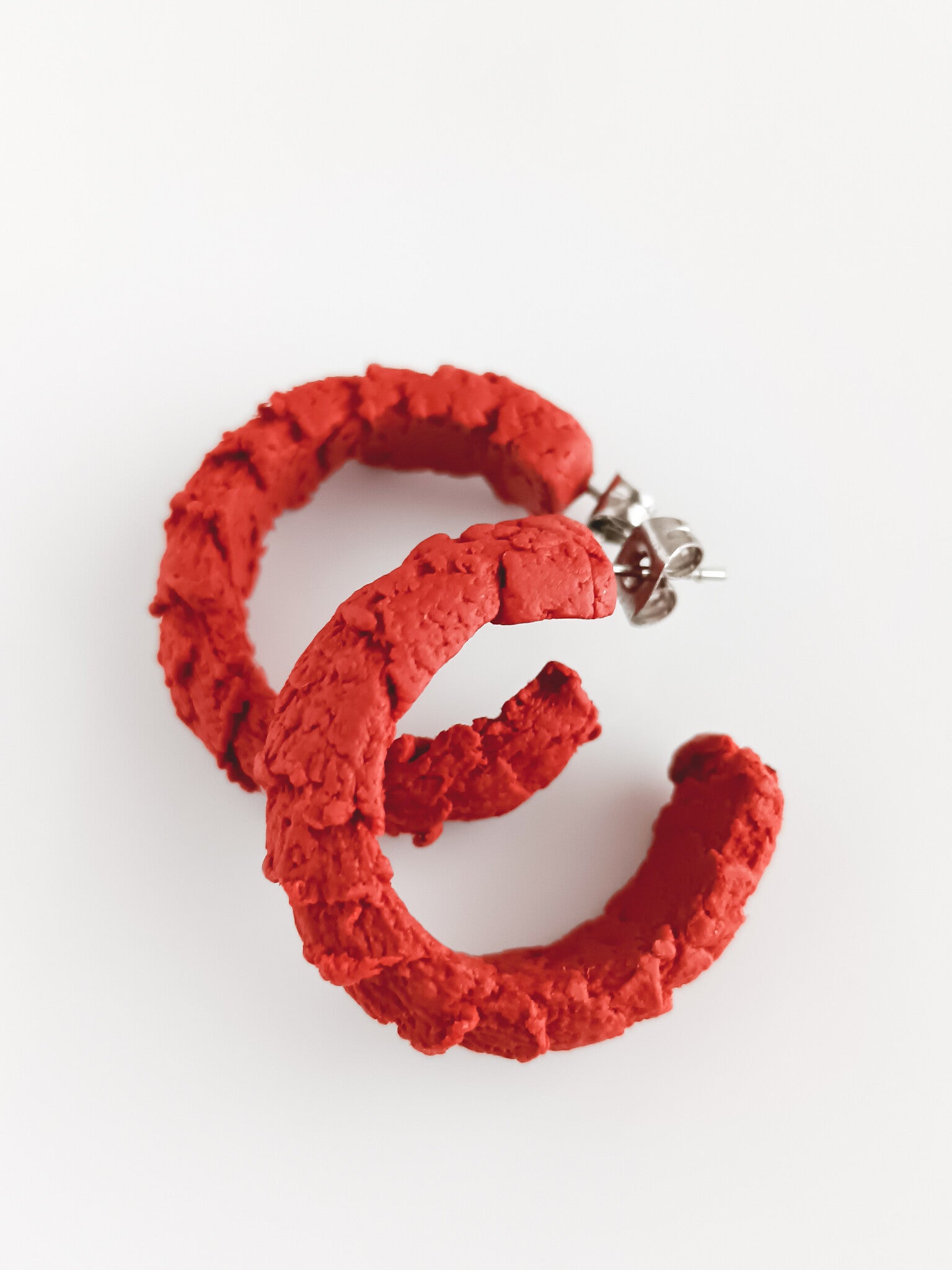 Small terracotta rustic hoop earrings made from polymer clay and finished with embedded high quality stainless steel studs. These hoops are very flexible, but it is not recommended to bend them deliberately.