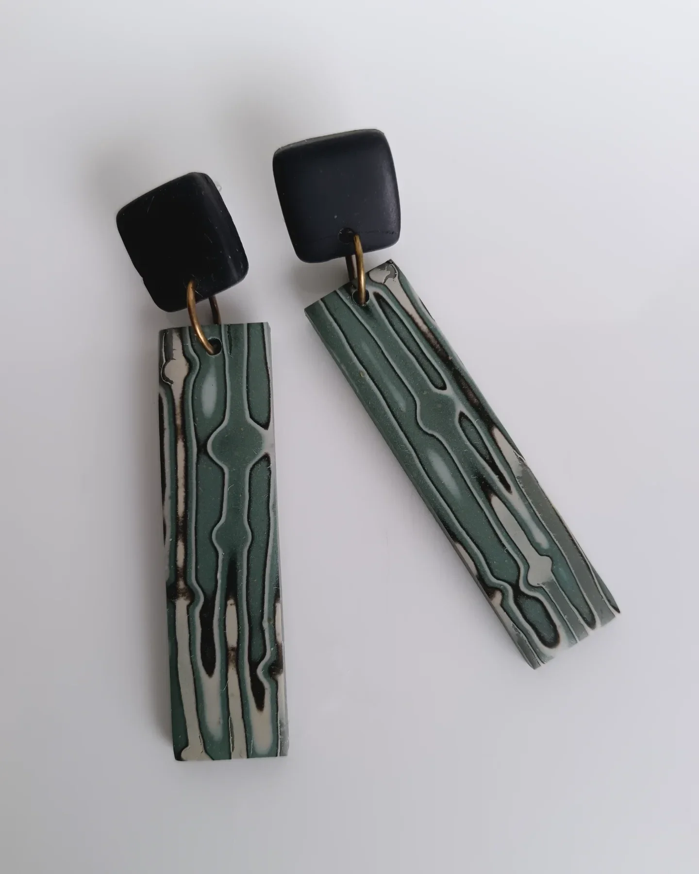 Long rectangle shaped earrings with a stainless steel stud.