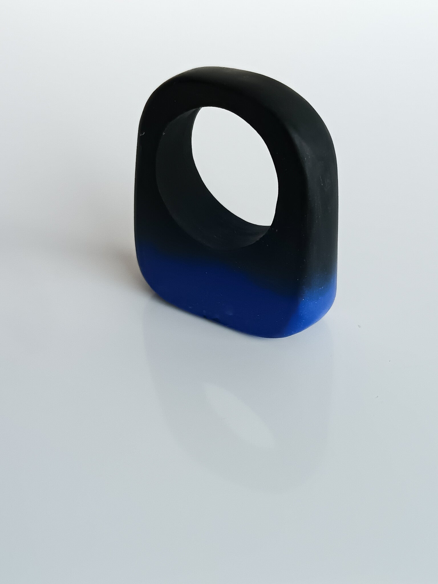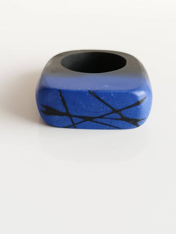 Solid ring all from polymer clay in black and blue. Diameter 19mm. Possible to make it slightly larger. (1-2mm)