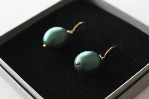 These small dangle earrings feature hand-shaped beads with an organic, almost stone-like presence. Each bead is individually formed, creating a slightly weathered metallic surface as a quiet nod to brutalist aesthetics.